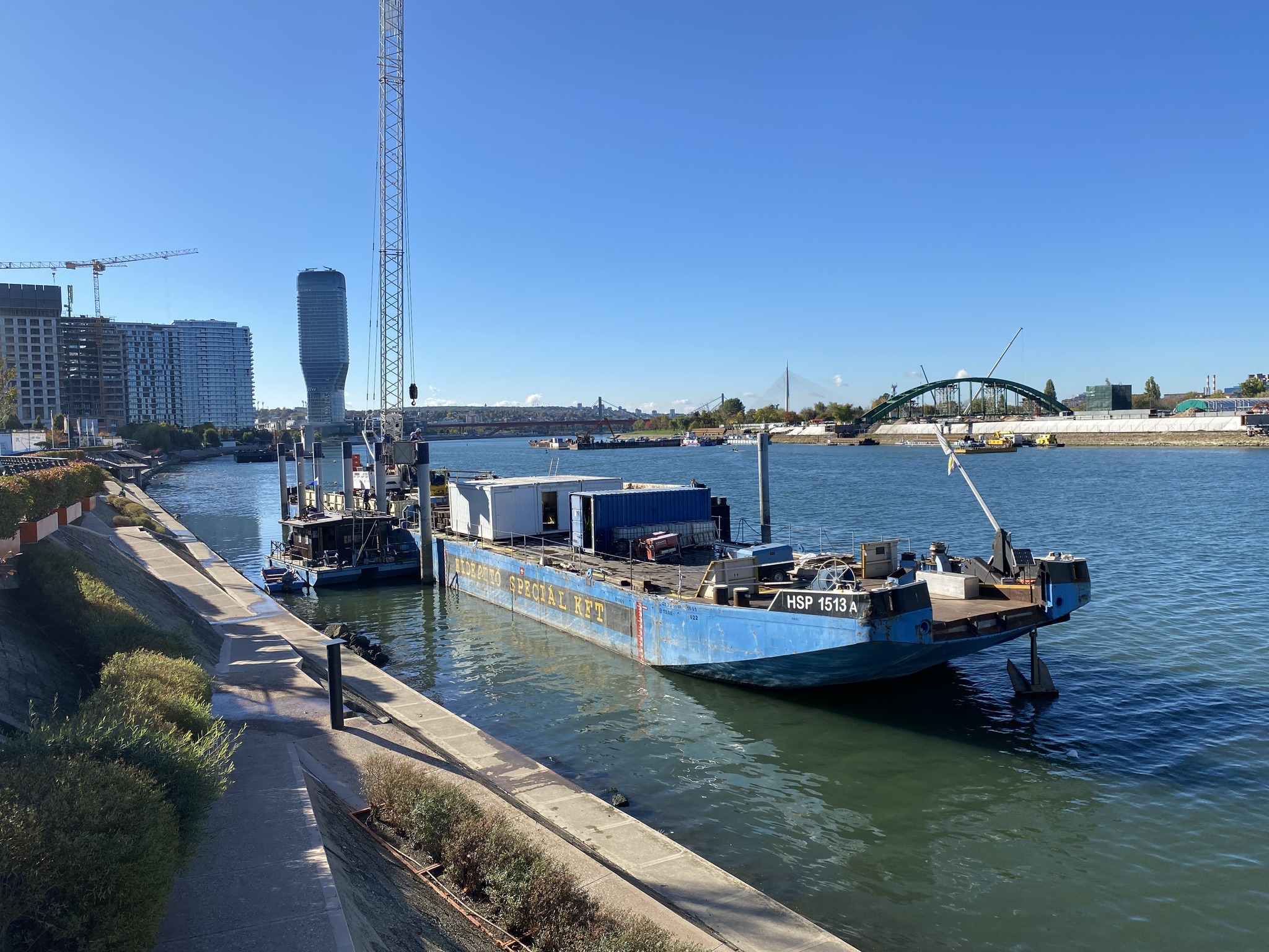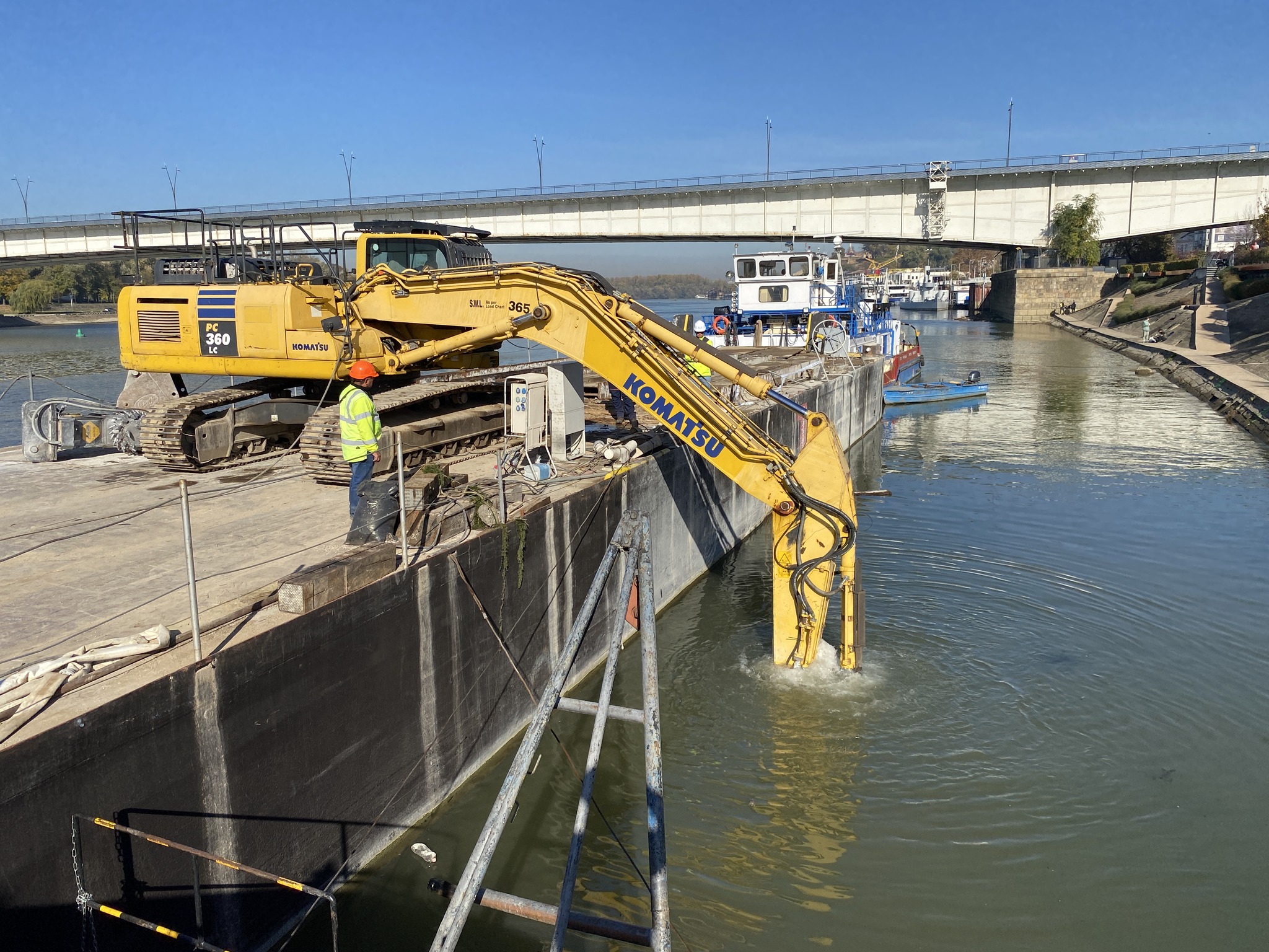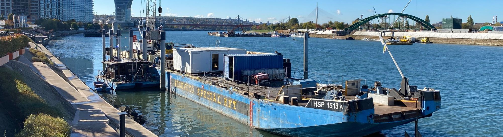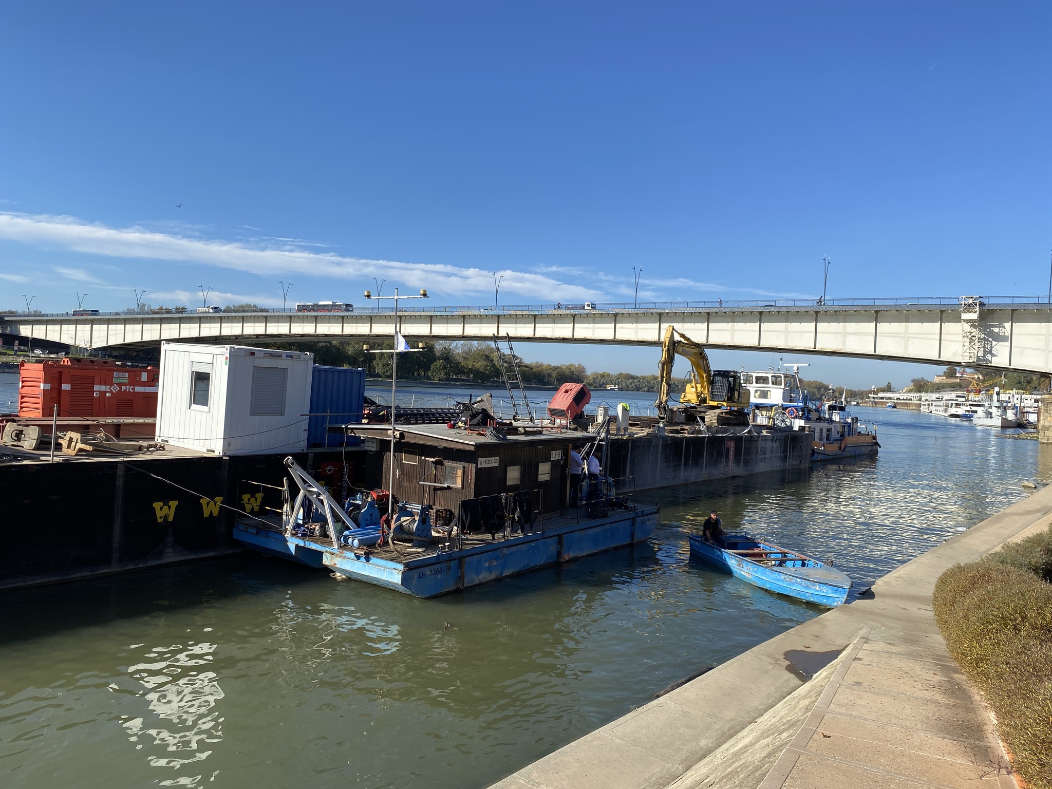 During our operations on the Sava River in Belgrade, we also carried out a waterborne task that was independent of—but spatially closely related to—the demolition of the Old Sava Bridge. The objective of the project was the professional removal of an aged pile structure supporting an old port pontoon, which, if left in the riverbed, would have obstructed future development works and waterborne operations.